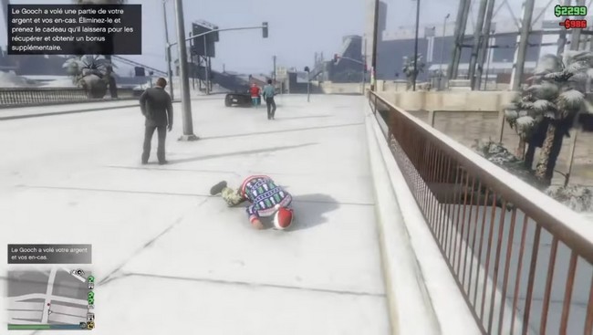 Apparaissant sous la forme d’un point rouge sur votre mini-carte, vous devez poursuivre le Gooch et le tuer. Vous récupérerez ainsi l’argent et les snacks volés, et le Gooch laissera un cadeau. Ramassez ce cadeau et vous débloquerez la tenue rare.