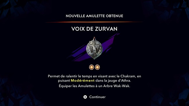 Retournez sur la place de l’énigme, positionnez-vous entre les deux statues et tirez une flèche dans la même direction que les deux statues d’archer parallèles pour révéler le coffre mystère avec l’amulette voix de Zurvan.
