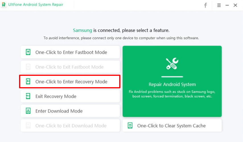 Étapes pour accéder au mode de récupération de Samsung via UltFone Android System Repair