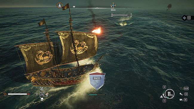 Quoi qu’il en soit, ce monstre n’a qu’une seule attaque : elle nage droit vers votre navire et vous éperonne. Cette capacité inflige des dégâts considérables, à tel point que les navires de bas niveau ne survivront probablement pas à un seul coup.