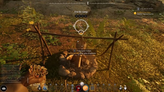 Une fois que vous avez fait un feu de camp selon les instructions, vous pouvez interagir avec lui pour accéder à la liste des recettes disponibles. Différentes recettes appliqueront différents buffs, alors n’oubliez pas de les vérifier dans le menu d’affichage de l’inventaire lorsque vous choisissez ce que vous voulez cuisiner en premier.