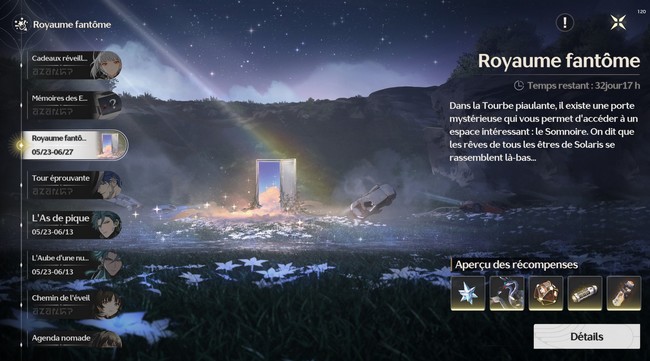 L’un des meilleurs moyens de continuer à gagner de l’Astrite est de participer aux différents événements tel que Royaume fantôme et la Tour éprouvante, et aussi au contenu de fin de partie proposés dans Wuthering Waves. En plus d’offrir des démonstrations de gameplay, ils récompensent les joueurs avec des quantités variables d’Astrite lorsqu’ils les terminent !