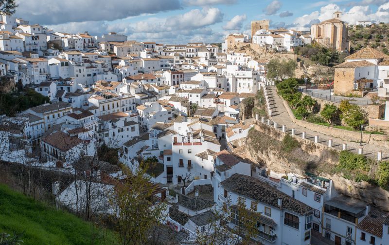 Setenil de las Bodegas, dans la province de Cadix, est unique en raison de ses maisons construites sous de gigantesques formations rocheuses. Ce village pittoresque offre des ruelles sinueuses et des maisons blanchies à la chaux, créant une atmosphère des plus charmantes. Une promenade à travers Setenil permet de découvrir des vues étonnantes et une architecture innovante.