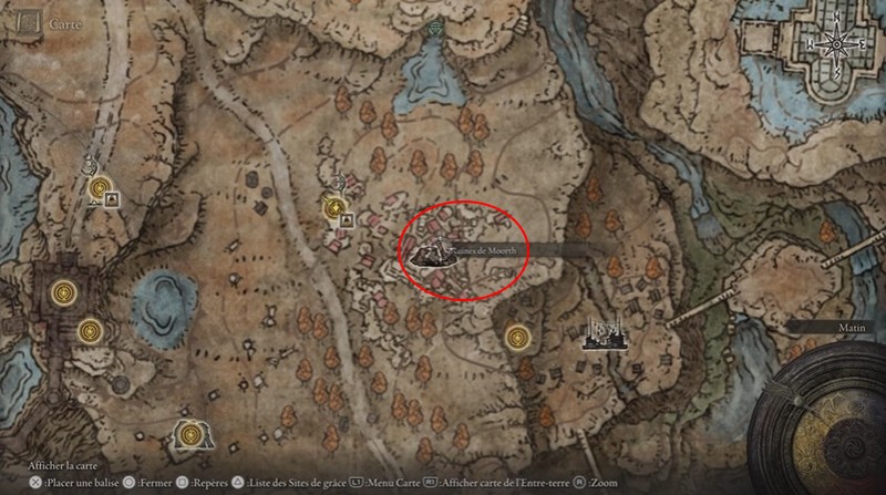 Pour vous rendre dans le Quartier religieux, vous devez commencer votre voyage par le site de grâce des ruines de Moorth, au sud-est du Royaume des ombres. Depuis le site de grâce, passez sous l’immense arche de pierre.