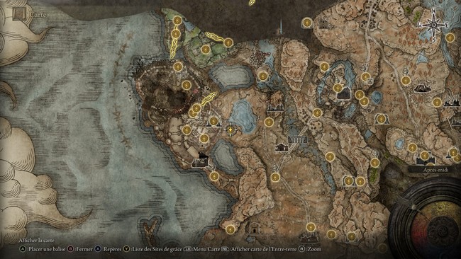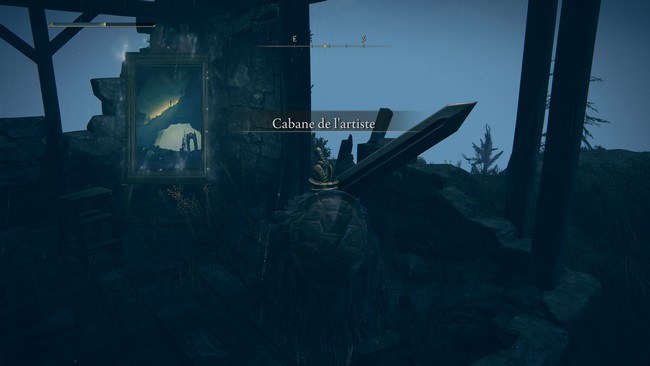 La première peinture de Shadow of the Erdtree se trouve dans la cabane d’artiste située sur un haut rocher dans la partie nord-ouest de la Plaine sépulcrale. Pour atteindre cet endroit, vous devez d’abord voyager vers le nord jusqu’à la Croix de Miquella, puis aller à gauche à travers le grand portail, et ensuite suivre la route le long des falaises vers le sud. Montez le sentier rocheux jusqu’à la plus haute falaise, où vous trouverez la peinture Incursion.