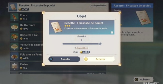 Comment obtenir la recette Fricassée de Poulet dans Genshin impact ?