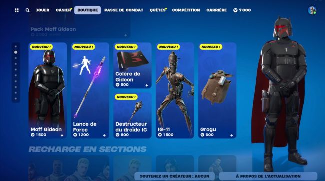 Dans le cadre du pack de cosmétiques The Mandalorian, les joueurs peuvent obtenir Grogu en se rendant à la boutique d’objets. Une fois dans la boutique, ils peuvent explorer les cosmétiques Star Wars et découvrir que Grogu est proposé pour 600 V-Bucks.