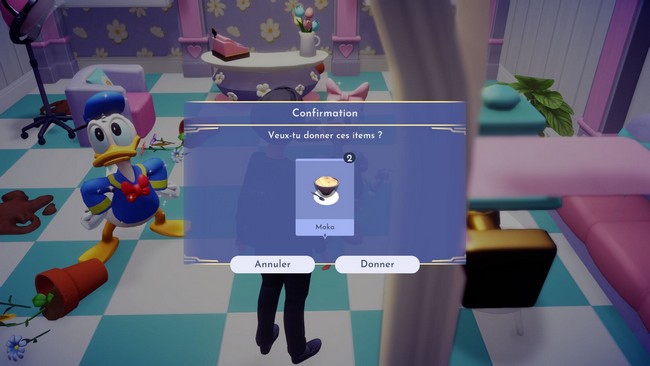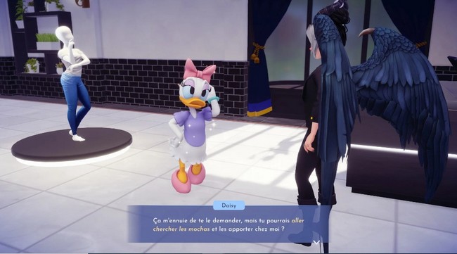 Daisy souhaite impressionner Donald pour leurs retrouvailles et vous demande de lui apporter des mochas pendant qu’elle se prépare. Allez parler à Rémy pour obtenir des cafés Moka (et non pas « mochas » comme écrit dans la quête) que vous devrez apporter à Daisy, dans sa maison. et apportez-les à Daisy dans sa maison.