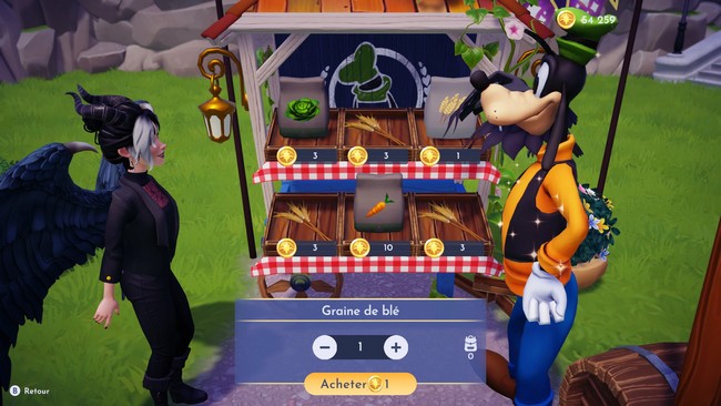 - 3 carottes : Achetez des graines de carottes au stand de Dingo dans la Prairie Tranquille. Elles poussent en 15 minutes.