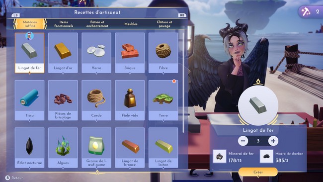 - 3 lingots de fer : Fabriquez-les en utilisant du minerai de fer et du minerai de charbon. Le charbon est disponible sur la plupart des affleurements rocheux de la vallée, tandis que le minerai de fer se trouve dans le Bayou de la Confiance, les Hauteurs Glacées, le Plateau Ensoleillé et les Terres Oubliées.