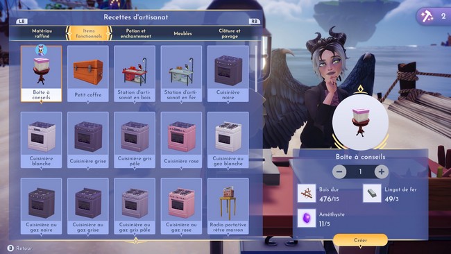 Une fois tous les matériaux en main, dirigez-vous vers une station d’artisanat pour fabriquer la boîte à conseils dans l’onglet « Items fonctionnels ». Placez ensuite la boîte près de la maison de Daisy.