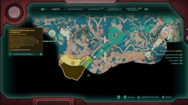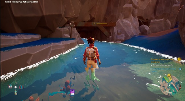 Une fois la quête « C’est par la pierre que nous enseignons » activée, votre prochaine mission sera de trouver le Temple du Rocher pleureur. Ce temple est situé au sud-ouest de la carte, près de l’Arbre frère des dunes d’Antar. Pour atteindre le temple, vous devrez traverser une zone submergée dissimulée parmi les rochers. Suivez le chemin pour déboucher sur une nouvelle zone où se dresse le mystérieux temple.