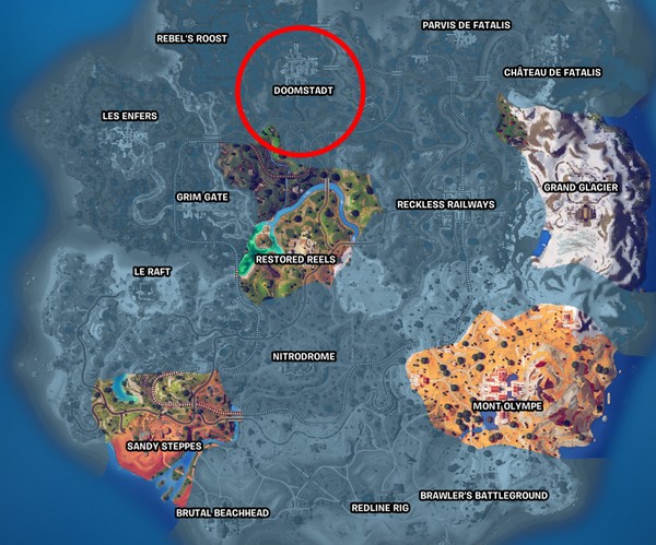 - Atterrissage Stratégique : Atterrissez sur le toit d’une des maisons à Doomstadt où vous pouvez repérer un coffre. Ramassez rapidement une arme et explorez les autres bâtiments pour trouver des coffres Fatalis ou Avengers. Ces coffres contiennent des armes de haute qualité qui vous seront très utiles.