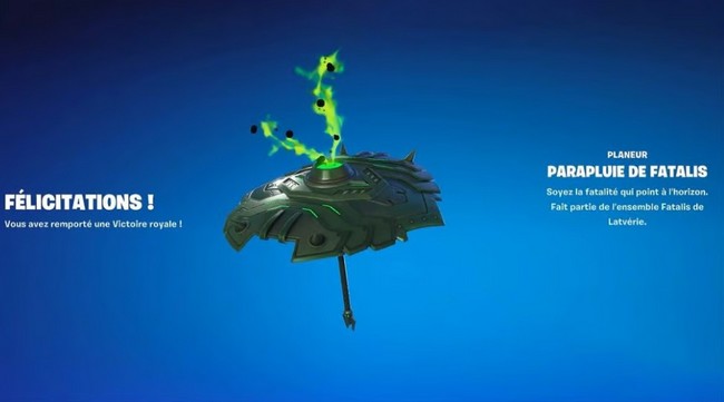 Pour obtenir le Parapluie de Fatalis, les joueurs doivent remporter une Victoire Royale dans l’un des principaux modes Battle Royale de Fortnite, que ce soit en mode Zero Build ou Battle Royale classique. Cette victoire peut être obtenue en solo ou avec des amis en Duo, Trio, ou Escouade. Une fois la victoire remportée, le parapluie est automatiquement attribué au joueur et peut être réclamé en revenant au lobby.