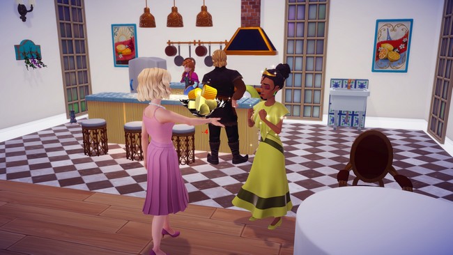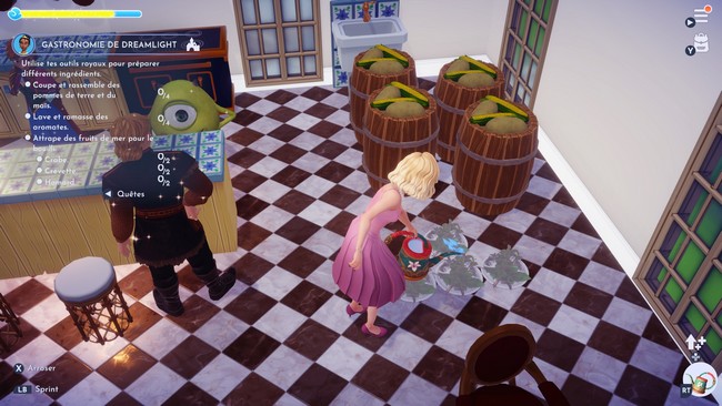 Tiana souhaite former d’autres villageois à la cuisine pour diversifier son stand lorsqu’elle n’est pas disponible. Elle vous demande donc d’inviter Anna, Bob Razowski, Kristoff, Mulan, et Woody à la rejoindre dans la maison de Rémy pour un concours de cuisine.