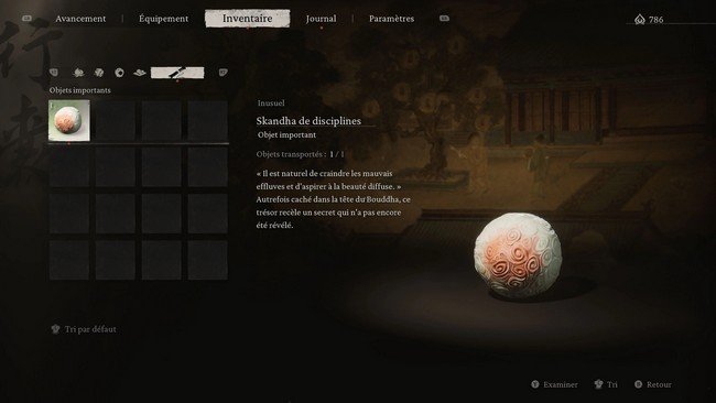 - Skandha de disciplines (Chapitre 1) : Ce Skandha se trouve dans la Forêt des loups, près de l’Autel de l’Extérieur de la forêt. Vous découvrirez une tête de Bouddha en pierre sur le sol, juste avant de combattre le Garde Taureau, le premier boss du jeu. Il vous suffit d’extraire le Skandha de cette tête.
