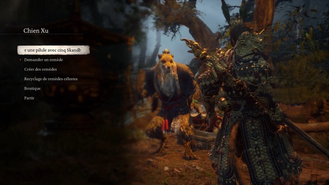Utilisez la peinture pour y accéder, puis parlez à Chien Xu. Sélectionnez la première option pour échanger vos Skandhas contre une pilule dorée miraculeuse. Cette pilule boostera toutes vos caractéristiques, renforçant ainsi considérablement votre personnage pour les combats futurs.