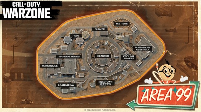 L’objectif derrière la conception d’Area 99 est de recréer l’expérience de jeu rapide et intense de Nuketown, adaptée au format Battle Royale de Warzone. C’est pourquoi la carte reste relativement compacte, permettant aux joueurs de plonger directement dans l’action sans longs intervalles entre les combats. En plus de sa taille modeste, Area 99 intègre de nombreux éléments de verticalité, avec des bâtiments élevés et un réacteur central menant à un réseau de tunnels souterrains, ajoutant ainsi de la profondeur à la carte malgré sa petite surface.