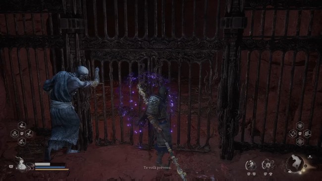 Pour débuter votre quête de la Lance Chubai, vous devrez progresser jusqu’à la deuxième zone du Chapitre 3 du jeu, une zone qui évoque l’atmosphère d’une prison. Une fois que vous aurez échappé à votre cellule, tournez à gauche pour découvrir une autre cellule, scellée par un cercle mauve.