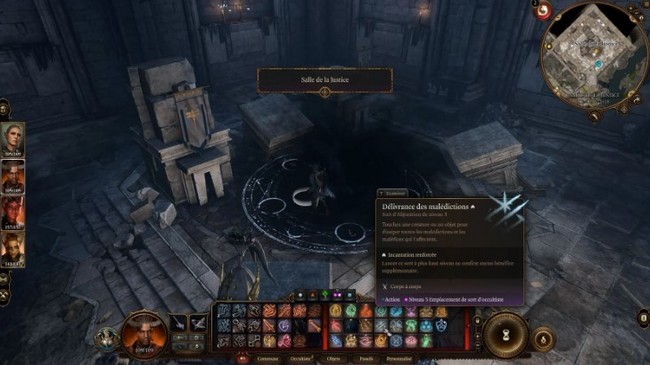 - Si vous jouez avec des personnages tels que Wyll, Ombrecoeur, ou encore un Paladin, ils possèdent souvent ce sort, ce qui vous permet de l’utiliser facilement. Si vous ne disposez pas de ce sort dans votre équipe, il est possible de trouver ou d’acheter un parchemin de Délivrance des malédictions pour accomplir cette étape.