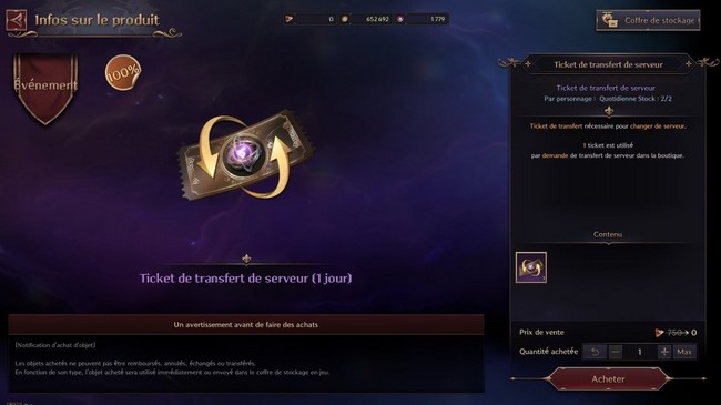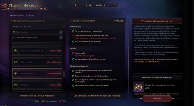 Gardez également à l’esprit que, une fois que vous avez acquis le ticket de transfert, il doit être utilisé dans les 24 heures suivant son obtention. Cela vous oblige à prendre une décision rapide si vous décidez de changer de serveur.