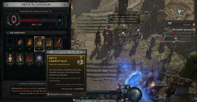 - Réputation auprès des Vestiges du Zakarum (Saison 6) : En progressant dans la réputation auprès des Vestiges du Zakarum pendant la Saison 6, notamment en éliminant des Marche-monde, vous débloquerez des Boîtes aromatiques. Ces boîtes contiennent diverses plantes, y compris des Souffles d’Ange. C’est une opportunité limitée à cette saison, mais très lucrative.