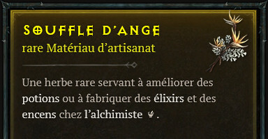 - Opales bouillonnantes de matériaux : En activant des Opales bouillonnantes de matériaux, vous obtiendrez automatiquement des plantes et des matériaux en tuant des monstres, dont des Souffles d’Ange. Ces opales sont disponibles dans les Royaumes bouillonnants, en particulier en améliorant votre réputation avec les Vestiges du Zakarum.