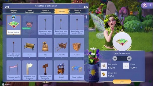 Utilisez ces matériaux pour fabriquer un Jeu de société dans l’onglet Meubles d’une station d’artisanat.