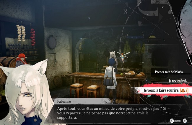 - En bas, Maria sera présente. Il vous suffira de lui parler pour entamer la première étape de votre relation et commencer à tisser un lien avec elle. À partir de ce moment, elle devient l’un de vos compagnons de voyage.