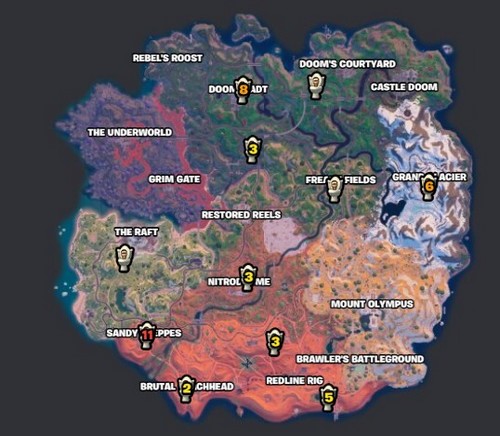 - Évitez les zones très fréquentées : Les points d’intérêt comme Doomstadt ou Grand Glacier peuvent attirer beaucoup de joueurs, ce qui compliquera votre mission. Si possible, atterrissez rapidement pour prendre de l’avance sur vos adversaires.