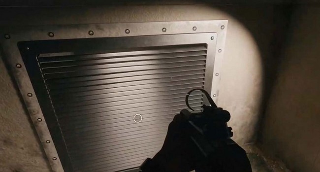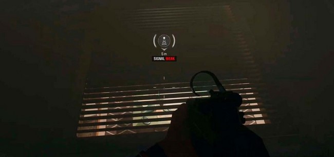 Après avoir sauté sur le balcon, retirez le couvercle de la grille d’aération. Avancez dans le conduit jusqu’à ce qu’un message “SIGNAL FAIBLE” apparaisse à l’écran. Cela indique que vous êtes proche de votre destination.