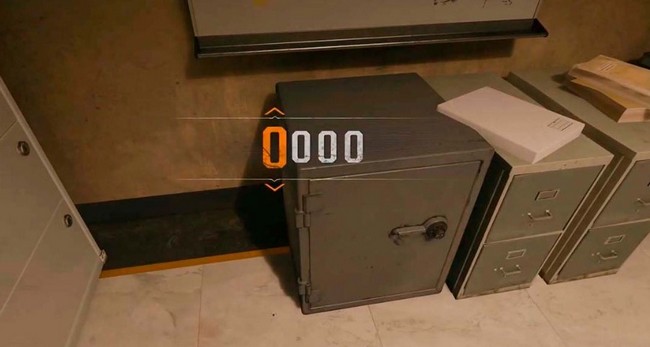 Dans le coin opposé de la pièce, cherchez le coffre-fort, qui se trouve sous un tableau blanc. Interagissez avec le coffre-fort et entrez le code que vous avez obtenu précédemment pour le déverrouiller.