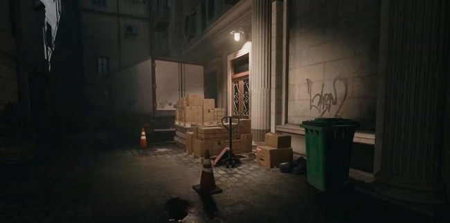 Vous remarquerez une pile de caisses derrière un camion stationné. Montez sur le camion, puis effectuez un saut pour atteindre un balcon équipé d’une grille d’aération. Cela vous rapprochera de votre objectif.