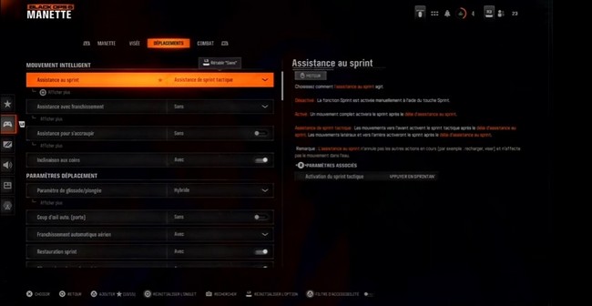 Désactiver l’assistance au sprint vous permet de contrôler manuellement votre vitesse, ce qui peut être essentiel dans des situations de combat rapproché.