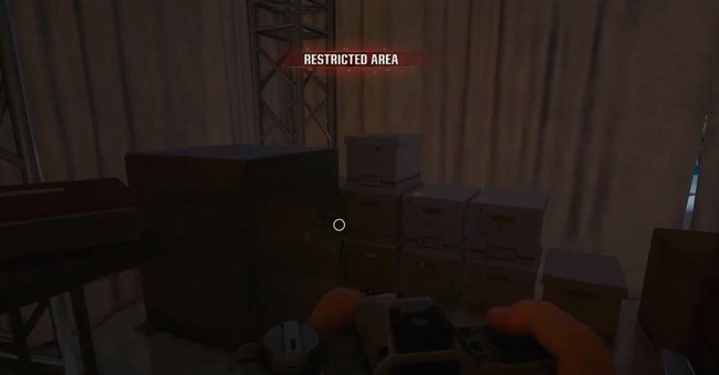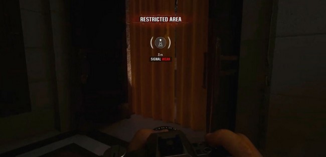 Après avoir traversé les rideaux rouges, dirigez-vous vers la sortie à droite, marquée par des rideaux jaunes. Dans cette nouvelle zone, vous trouverez une radio. Activez-la et ajustez le signal pour obtenir un mot de passe. Ce mot de passe est unique à chaque partie, donc il vous faudra l’écouter attentivement.
