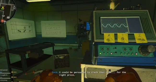 Si les mathématiques ne sont pas votre point fort, vous pouvez retourner à la zone de départ de la carte et parler à Peck. En échange de 5 000 Essences, il vous fournira directement le code à entrer dans l’ordinateur du bureau de recherche. C’est une solution rapide et efficace si vous ne souhaitez pas vous embêter avec les calculs.