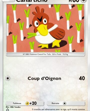 - Pokémon de base : En tant que Pokémon de base, Canarticho peut être joué immédiatement, sans nécessiter d’évolution préalable. Cela permet aux joueurs de l’utiliser dès le début de la partie.