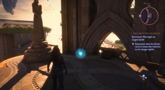 Pour trouver ce deuxième feu follet, dirigez-vous vers le balcon au-dessus de l’entrée du Phare, entre deux statues qui se font face. Récupérez le feu follet et revenez le déposer dans la salle de musique. En plaçant les deux feux follets sur leurs socles respectifs, un portail s’ouvre, vous menant à un balcon surplombant la bibliothèque.