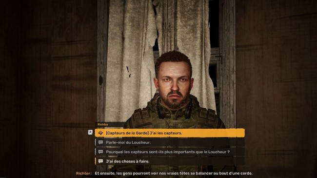 Richter est un membre de la faction des Stalkers, connue pour sa vision individualiste et son attachement à la liberté dans la Zone. Voici les principaux points à considérer si vous choisissez de lui donner les capteurs :