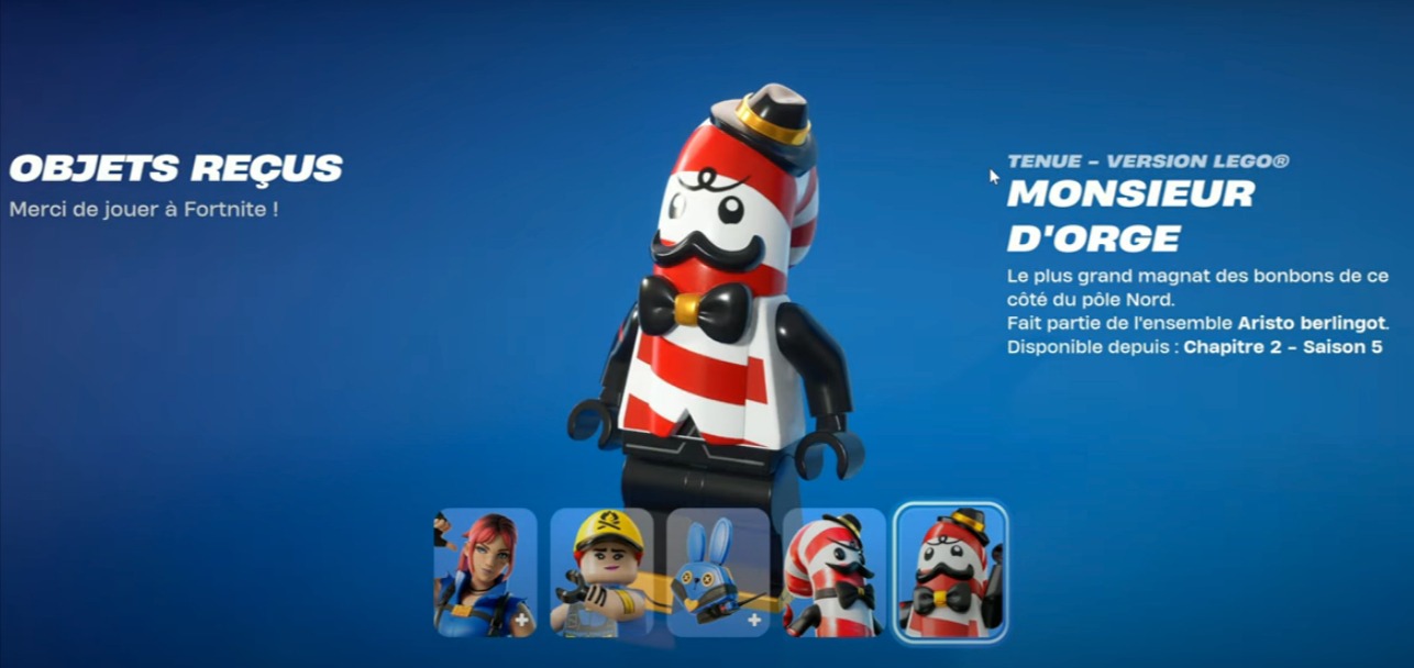 Si c’est la première fois que vous associez vos comptes LEGO et Epic Games, vous recevrez également un bonus sympathique : le skin Émilie Cardi. Ce skin supplémentaire est un joli cadeau pour les joueurs qui n’ont pas encore effectué cette liaison de comptes. C’est donc une excellente occasion de doubler vos récompenses tout en profitant de Monsieur d’Orge !
