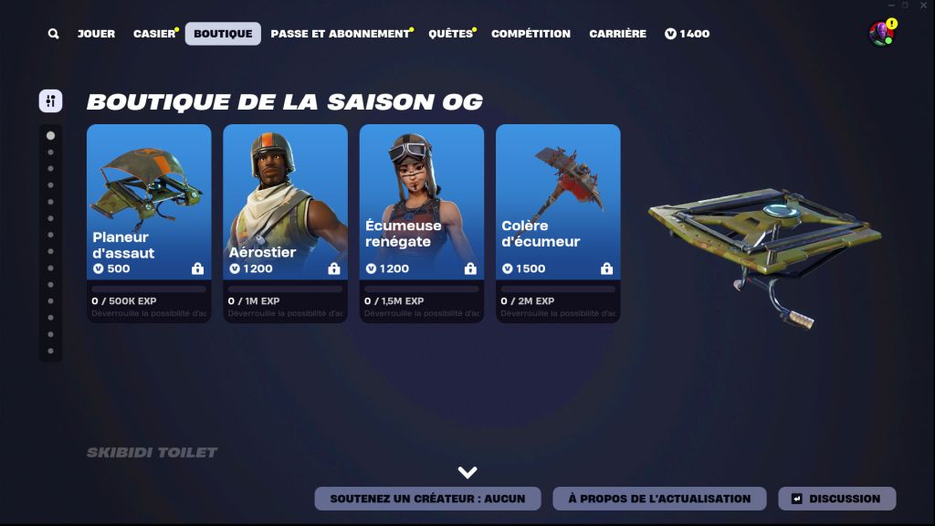 - Planeur d’assaut : 500 000 EXP