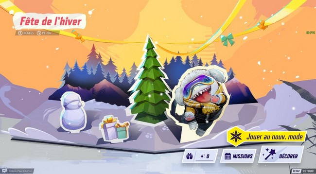 Pour débloquer le skin Jeff Aileron Peluche, il est essentiel de progresser dans l’événement en accomplissant les missions liées au mode « Plouf d’Hiver ». Ces missions vous permettront de gagner des Flocons, la monnaie spécifique à cet événement. Vous devrez utiliser ces Flocons pour décorer les paliers de progression. Le skin de Jeff se débloque au dernier palier, donc vous devrez jouer de manière régulière et compléter les missions pour accumuler suffisamment de Flocons.