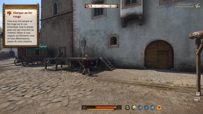 Pour qu’un garde vous conduise à l’exécution, vous devez d’abord commettre un délit majeur. Après avoir été capturé pour un crime grave, vous serez marqué au fer rouge. Ce marquage est un élément crucial dans l’histoire, car il vous permettra de vous retrouver face à l’exécution, une condition pour obtenir le trophée « Échapper à la corde ».