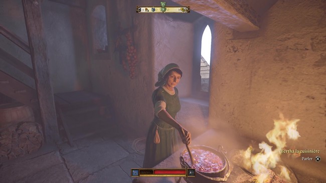Votre première étape consiste à vous rendre dans les cuisines de la Tour de la Vierge où vous rencontrerez Manyeta, la cuisinière. Elle vous donnera des informations sur l’origine des démons, et vous devrez éteindre un premier foyer dans la cuisine en versant de l’eau bénite sur le feu près de la marmite.