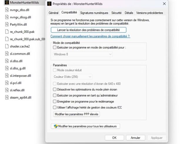 - À l’inverse, certains joueurs ont trouvé que régler la compatibilité sur Windows 8 pouvait stabiliser le jeu.