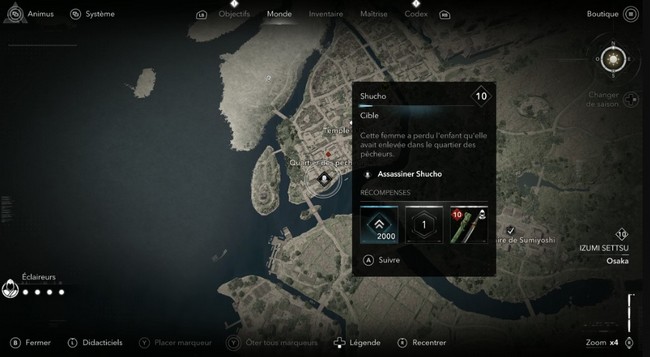 Les informations recueillies précédemment vous permettent d’anticiper un nouvel enlèvement. Mucho prépare une nouvelle attaque à l’ouest du temple d’Osaka, sur une petite île.