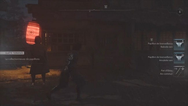 - Vous obtenez la récompense bonus « Papillon de Bienveillance » (Amulette), utilisable par Yasuke et Naoe.