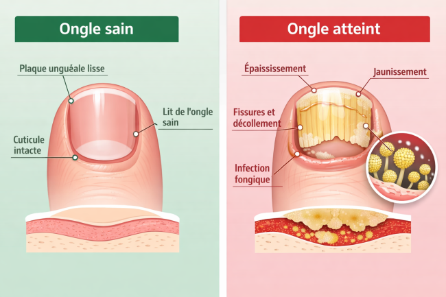 Ces traitements topiques présentent une efficacité variable, estimée entre 40 et 70 % pour les infections légères à modérées. Leur principale limite réside dans la difficulté du principe actif à traverser l’épaisseur de l’ongle pour atteindre le foyer infectieux.