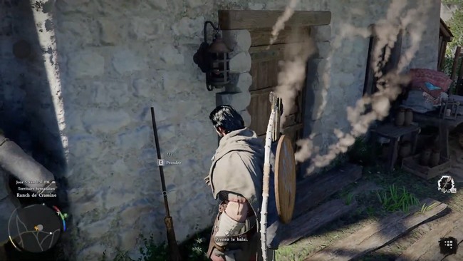 Il ne suffit pas d’utiliser le balai depuis le sol. Pour réussir cette mission, vous devrez grimper sur le toit de la maison. Une fois en hauteur, dirigez-vous vers la cheminée. Dans votre inventaire, sélectionnez le balai dans la roue des équipements et équipez-vous de cet outil indispensable.