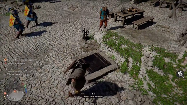 • Premier pas vers l’aventure : Après avoir fait face à un personnage énigmatique, vous trouverez une trappe au sol. Ouvrez-la et vous accéderez aux égouts. C’est ici que commence votre voyage dans ce lieu sombre et humide.